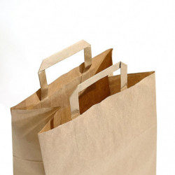 Sac Papier Kraft couleur écru avec poignées plates parfait pour tous les commerces soucieux de valoriser leurs produits vendus. De couleur marron, pratique avec ses poignées plates et très résistant : Ce sac Kraft cumule les qualités. C'est le produit de substitution parfait aux sacs plastiques avec bretelles.