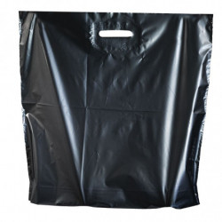 Le sac et sachet NOIR avec poignée découpée renforcée intègre l'impression de votre, nom, logo, adresse sur 1 côté avec 1couleur. Facilitez-vous la vie en intégrant la peronnalisation de vos futurs sacs plastiques pour magasins.