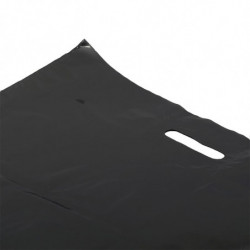 Sac et sachet plastique 350 x 450 mm noir avec poignée découpée renforcée imprimé avec votre nom, logo. Ce sachet imprimé véhiculera votre marque et donc votre image. Vos produits avec cet emballage sur-mesure seront valorisés. Vos clients apprécieront à la fois le côté pratique (poignée) et l'aspect qualitatif de ce sac noir imprimé. L'impression est sur 1 côté avec une couleur au choix. Transmettez nous simplement votre logo , votre marque, votre texte et nous faisons le reste. Les frais de cliché sont offerts.